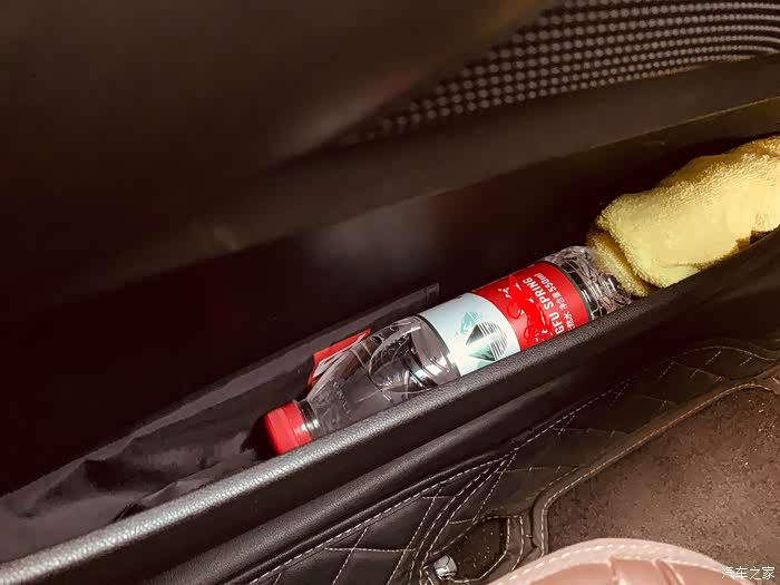主驾车门储物格,平常放一瓶水就够了,跑长途的时候能放四五瓶水,拿取方便。
