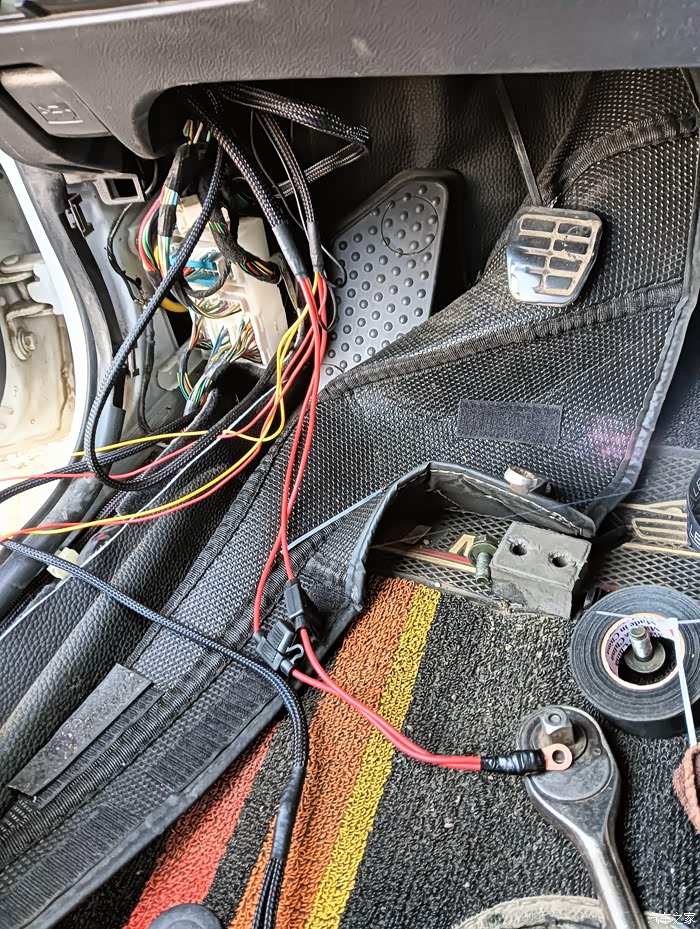 长电线,保险丝和背部有一根红色,筷子尾部那么粗,一根线尚在保险丝盒用十个小扳子拧的,拧之前必须把电瓶线卸掉