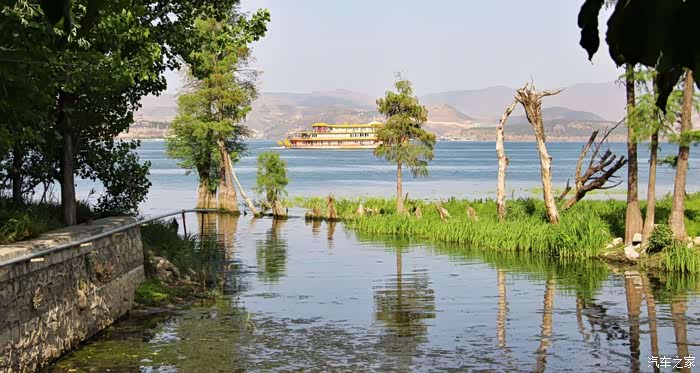 从古城的四方街沿七一街向东南方向前行,进关门口后改向南行,几分钟后就能看见一块大书“天雨流芳”(纳西语“读书去吧”)4字的木牌坊。从牌坊下走过,左前方是一块白墙黑字的大照壁,上书徐霞客的“宫室之丽,拟于王者”,照壁的正对面就是有着王者气象的木府大门。