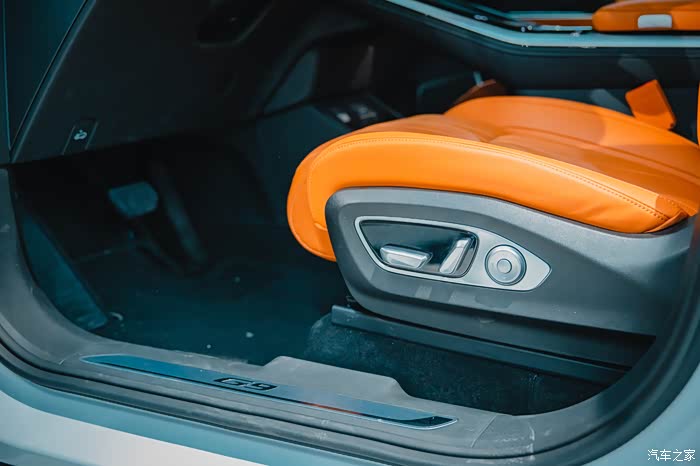 橙色的真皮座椅,颜色爱里爱气。电动调节不在话下,加热通风按摩震动,全都有