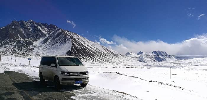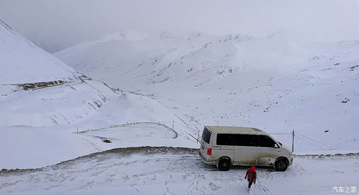翻越第二座海拔4414米的“昌拉”雪山垭口。冰雪太厚,真的分不清路面了