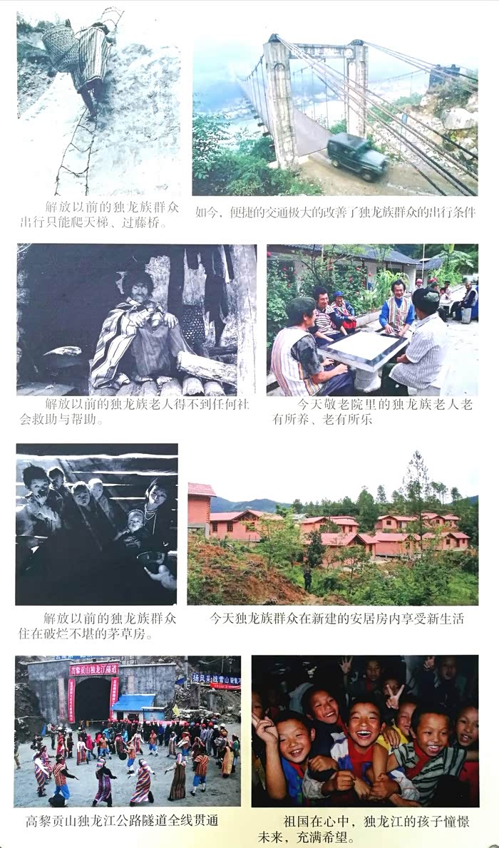2018年底,独龙族已实现全民族整体脱贫。为了人口不足5000人的 独龙族同胞实现整体脱贫,国家特意投入几十亿资金,不仅修通了公路,还整村整寨的实施异地搬迁,建设大量的按置房。独龙族小孩上学是全免费的,独龙族农业生产的种苗、肥料也是全免费的