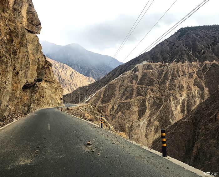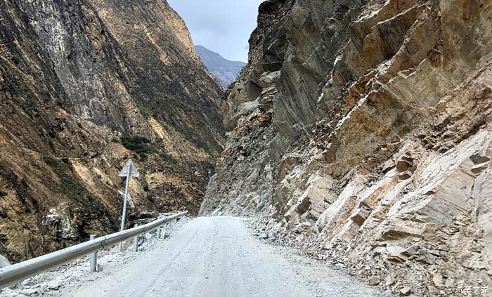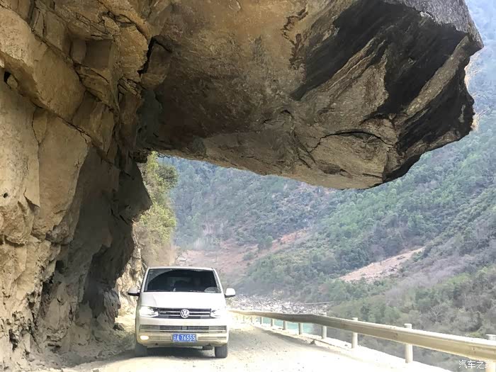 爬完“东达山”前方又是“觉巴山”。下觉巴山时,遇上了此次行程中最危险的情况!图中这段路位于觉巴山半山腰上,道路右侧 就是深不见底的澜沧江峡谷,道路本就不宽,靠峡谷这侧居然没装防撞护栏!当时大白时速50码,一块大如饭碗的石头 突然从山上砸落下来