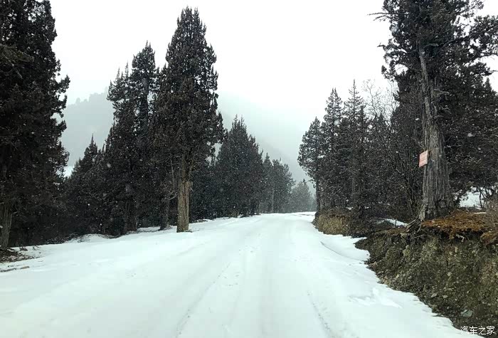 又开始下雪了……地上的积雪已经很厚了,都已经分不清路界了,只能沿着前车留下的车辙印继续向前!这雪要是越下越大,用不了几个小时,路上的车辙印就会消失……到时候还怎么继续向前呀