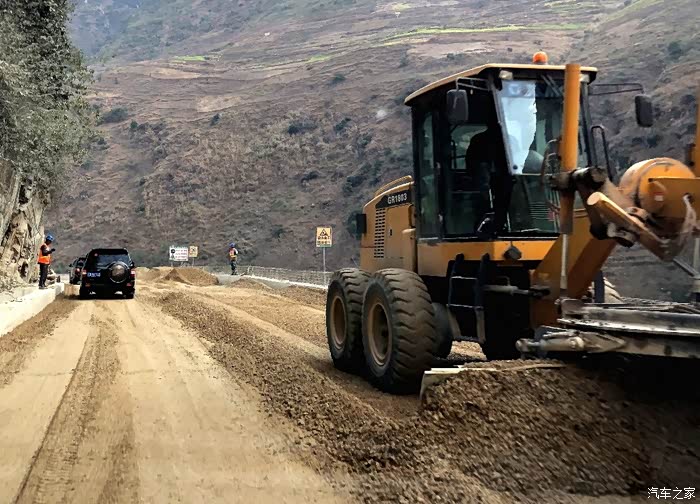 第二天(1月22号),一出六库城就开启了越野模式:六库~福贡县~贡山县,250公里全程路面大修中,早7点~晚7点对社会车辆开放通行。晚7点后,全程限行!就算你没赶到贡山,还在路上呢?对不起,也不让你再跑了!原地停车待着吧!晚上7点整,所有的施工车辆、挖机、铲车全都一起开动,个别路段还放炮炸石