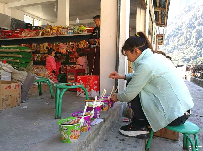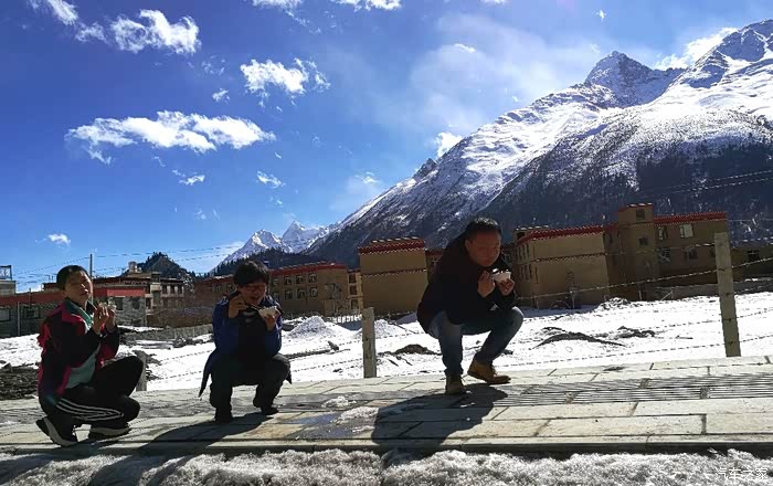 饭馆老板一家,明天一早也要自驾回四川老家过年了,今天其实没营业。看到我们进来,问明情况后很热情的招呼我们一起吃饭。老板人特好,一直在解释因为大家都回家过年去了,卖菜的也走了。今天只煮了一锅白米饭,一个酸菜汤。由于丁丁当当不能吃辣,最后老板还找了一个土豆,做了一个清炒土豆丝给孩子们吃。再此,忠心祝福永“勇哥川菜馆”生意兴隆,万事如意。对面着雪山,虽然只是一顿粗茶淡饭,大家却吃出了“虫草”、“松茸”、“藏红花”的味道