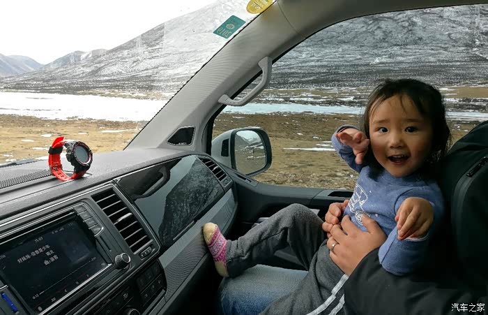 ?!毕竟是海拔5000米呀,一二十分钟内开车通过不会有高反,这一堵就是1个多小时呀。后来大人的担心多余了,当当在车上从后排跑到前排玩得可嗨啦