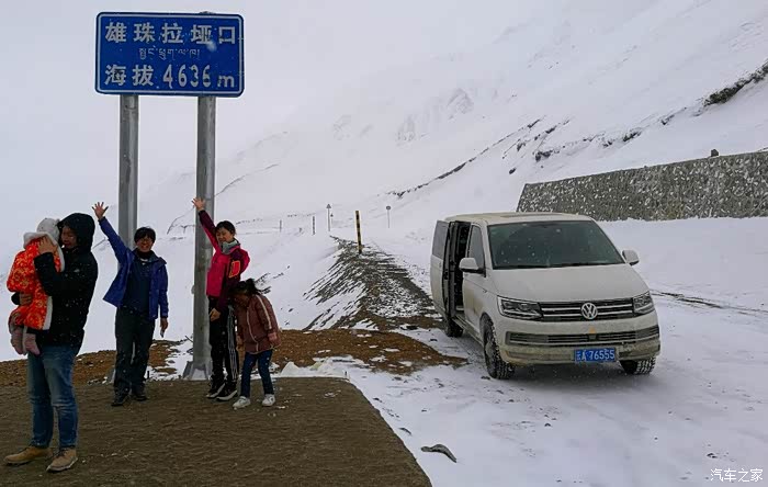 !终于翻越第一座海拔4636米的“雄珠拉”雪山垭口。虽然气温已下降至零下-8度,依然不能阻挡我们拍照留影的心情。这可是当当小丫头目前到达的人生最高点哦。没想到后面的行程中,“4636”这个记录将会很快被刷新!