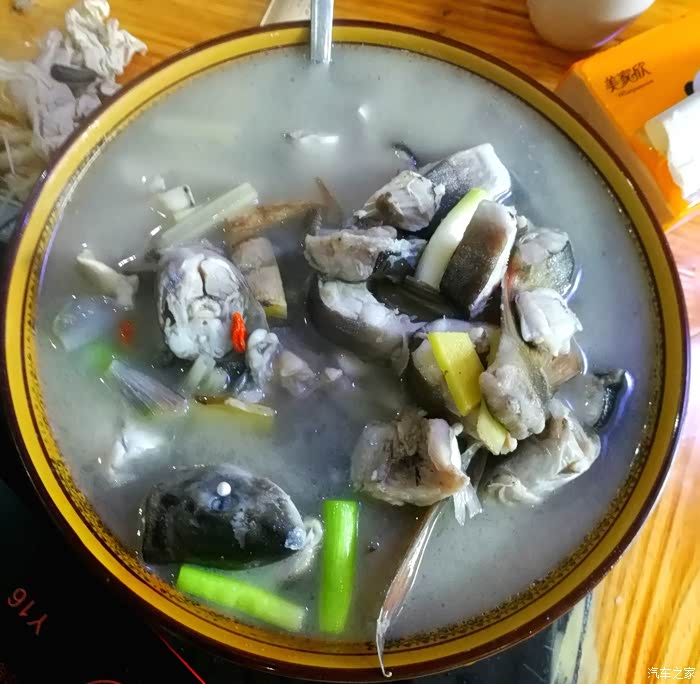 走了四个多小时才到福贡县城(离六库110公里),由于路太烂坐车很不舒服,大家都没味口吃饭。刚进福贡县城便看到一家让人食欲大振的饭馆:大理金花鱼庄。这盆“白族酸辣鱼”酸爽热辣,半时内五斤多的份量就被一扫而光。