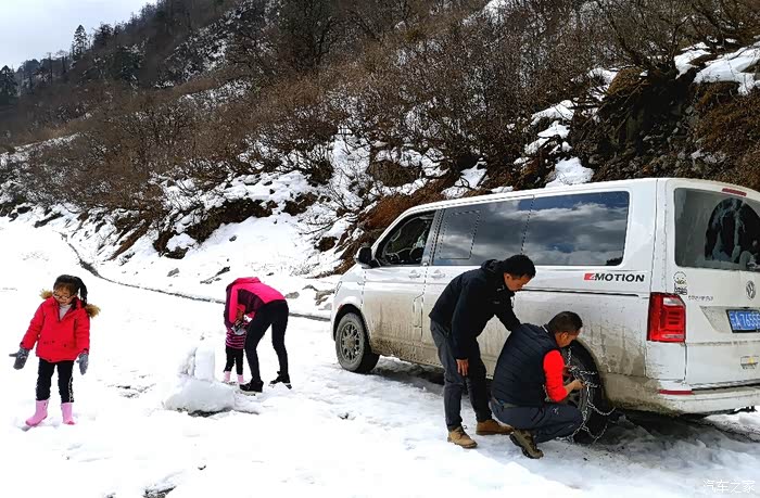 在海拔近5000米的东达山上堵了一个多小时车。当时车外气温零下-7度!这时候我们几个大人心里开始紧张了