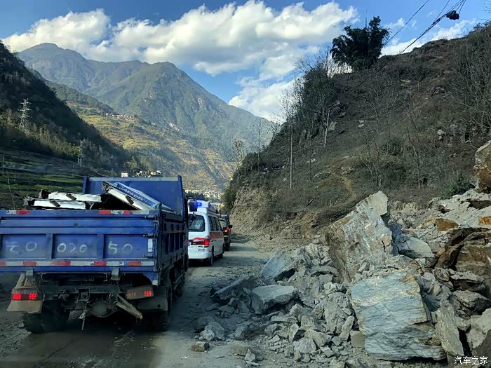 中奖啦!今晚要在路上睡车里啦!拼命赶,终于还是没能赶在睌上7点前到达贡山县城。刚到“腊咱”封路点,离贡山县城还有30多公里呢,就被卡点截下了,不让再往前,说是前方两公里的地方正在埋炸药,准备炸石扩路!这可咱整呀
