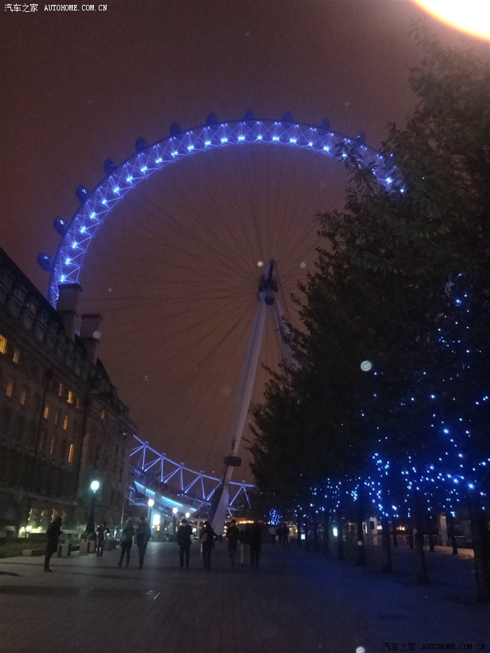 在桥这边回望伦敦眼,幽蓝的灯光映在泰晤士河中。