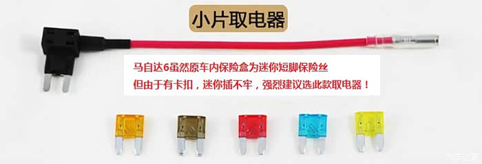 20、马自达6车内保险丝为上图中的迷你短脚保险,本人也是按某宝商家建议购买的迷你短脚取电器,哪知马6保险有卡扣,短脚保险插不到底,“使劲”也没用,强烈建议此款取电器要买小片取电器,本人和某宝商家已退换,还没到手,没法照片,选用商家图片。
