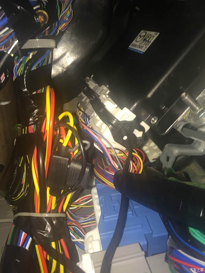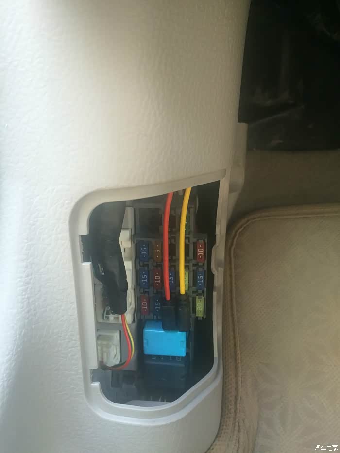 21、保险盒取电:红色线为ACC线,我才用的是保险盒里的有个空位,看坛友帖子说是后雨刮器,我的小马没有后雨刮器,正好利用上,黄色线是常电,保险盒里只看到门灯,应该是常电(这个坛里没找到说明,但拔掉此保险,我的小马连时间都恢复出厂设置了,应该是常电无疑),黑色线打铁,我连接在了附近的一棵螺丝上;