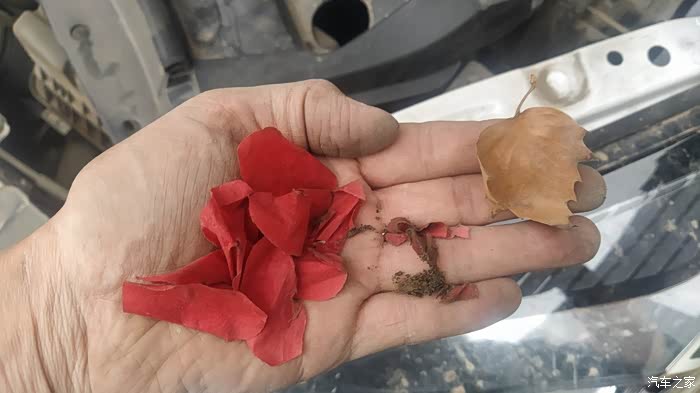 在雨刷下的U型槽里取出来的垃圾,都四个多月了,竟然还有提车时候崩的礼花