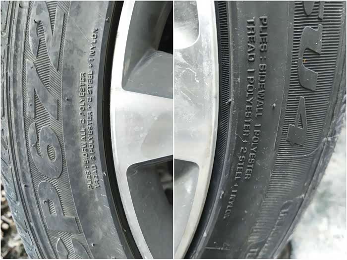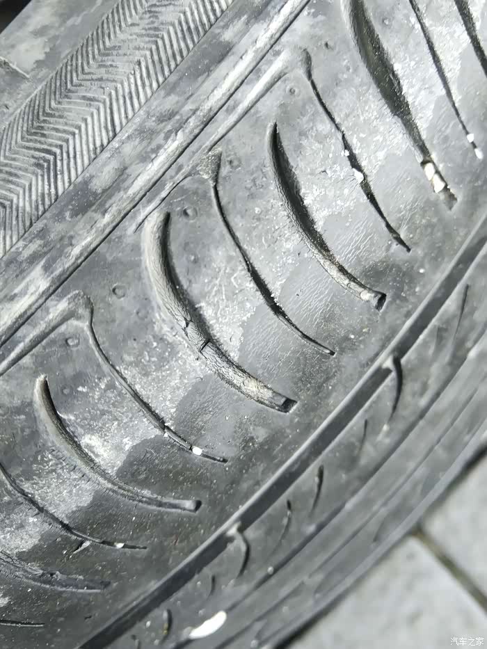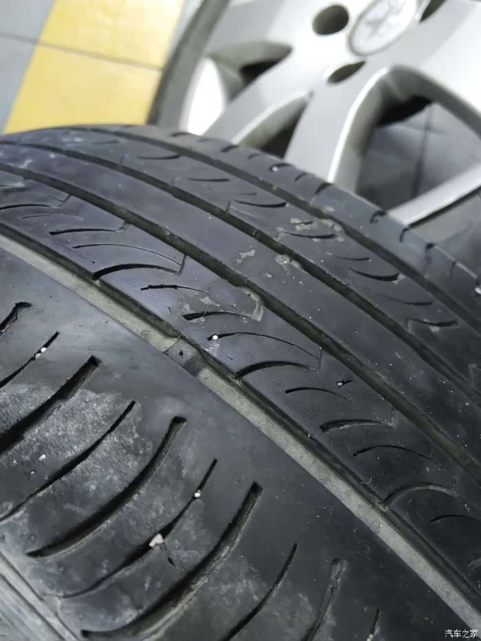 4年7W8原胎磨损情况,两侧快接近磨损标志,中间肋条花纹没有了