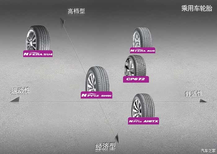 因上次换胎是在途虎网上下单的,感觉还不错,速度快,方便,质量有保障,而且小区附近也有一家他们的养车工场店,于是就开始在网上关注,目标是舒适性好,胎噪低。经过比较,最后目标锁定耐克森SU4,SU4在耐克森官方定位为运动高档型(见定位图),相信不少车友看过之家的一篇***《看清它的真面目 2016中国轮胎德国测试》,SU4在测试过程中总体表现不俗,其中滚动阻力测试排名第一,甩开第二名一大截,主观舒适性排名第一,通过噪音排名第三,各项性能都很平均,综合排名第四,关键是价格还便宜,比CP672贵不了多少。
