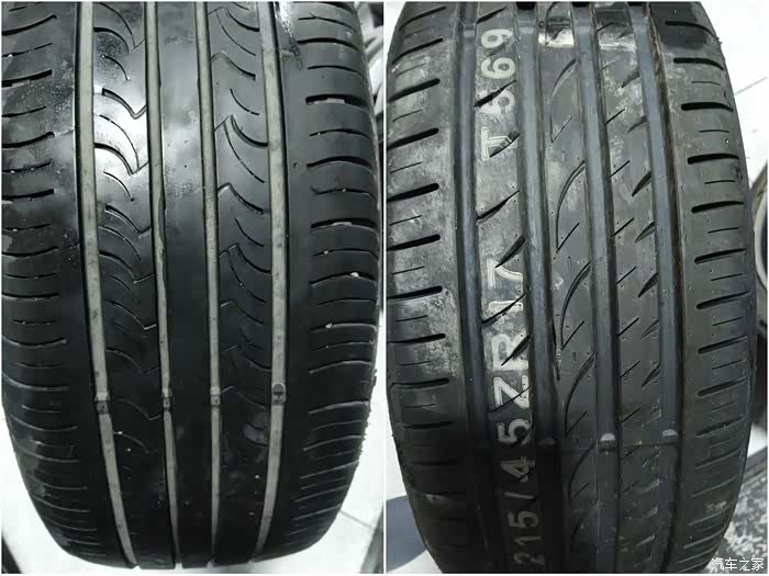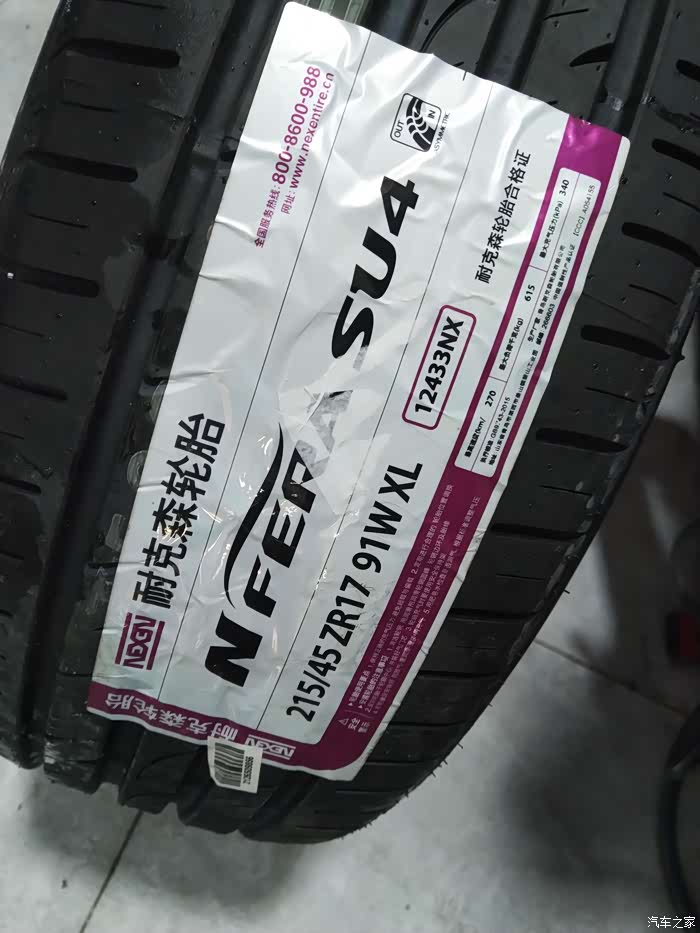 到店的新胎SU4 215 45R17,这个规格市场保有量较低,选择面少价格还贵一点,也考虑过换50R,怕年审不过。