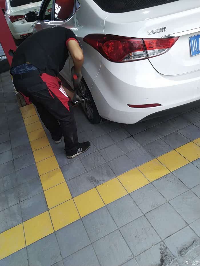 师傅采用专用十字扭力批安装,实行双人重复检查,轮胎安装容不得半点马虎,TUHU的做法值得点赞。