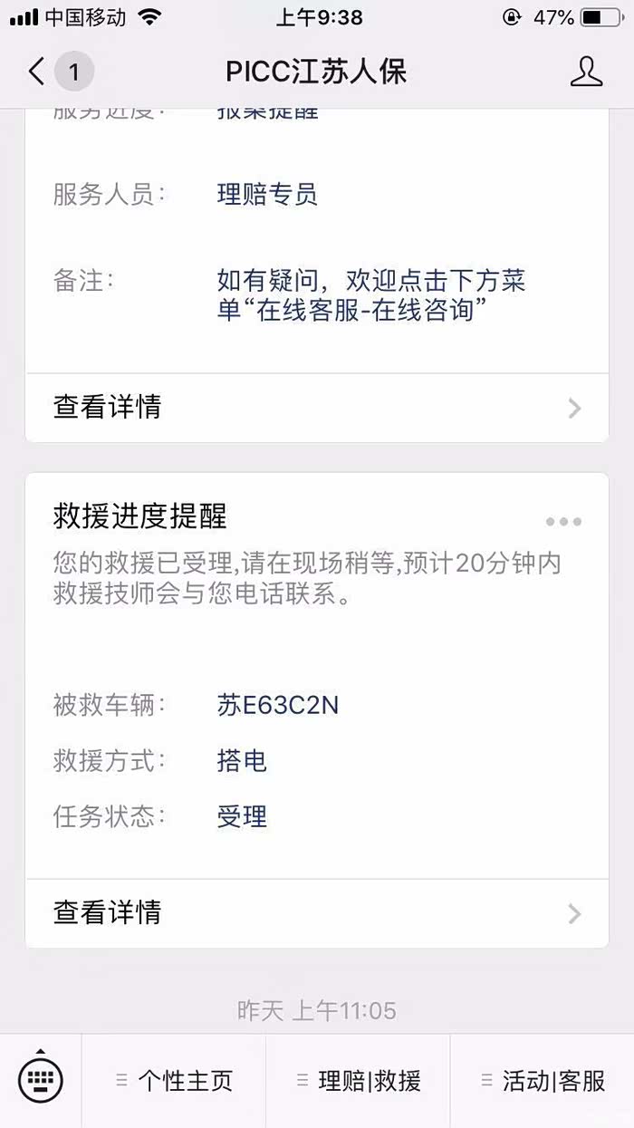 我是人保的车险,第一反应打电话,然而救援现在都是微信申请,电话没有这个服务了。关注公众号即可