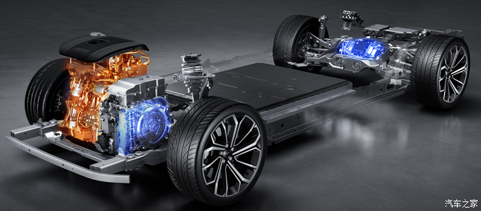 这辆车配有“三电机”系统,一个P1电机,一个P2电机以及一个P4电机。