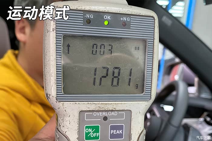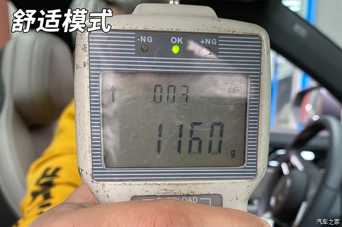 这辆车有舒适和运动两种转向力度。在舒适模式下,方向盘转向力为1.160公斤;在运动模式下,方向盘转向力为1.281公斤,低速转向和停车入位相当轻便。