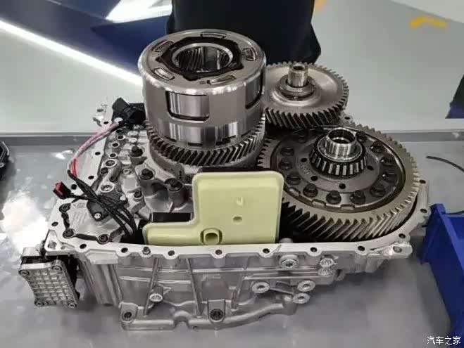 这辆车与其它插电混动车型最大的区别,就是有一套由轮系组成的3档自动变速器,也就是混动专用的DHT变速箱,可以随时切换、同轴输出,体积非常紧凑。