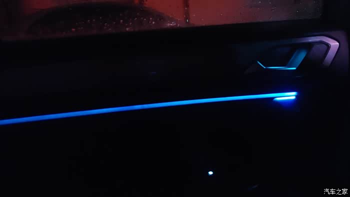 副驾驶和右前门的蓝色效果,感觉有点带紫,确实不能不和带主机灯头的比,不过咱这个不花钱,想怎么玩怎么玩。