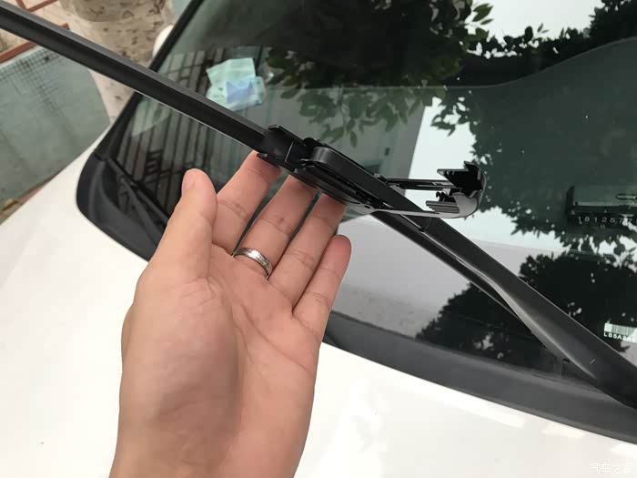 开始施工,拆掉旧雨刮,新雨刮是卡扣式的,把雨刮杆穿过雨刮卡扣,安装贴别简单。