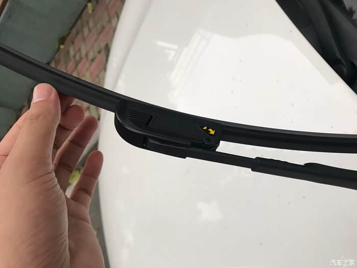 副雨刮和主雨刮安装一样的方式,这种雨刮器如果要拆掉的话也非常简单,轻轻按下雨刮外壳卡扣就可以弹出来了。
