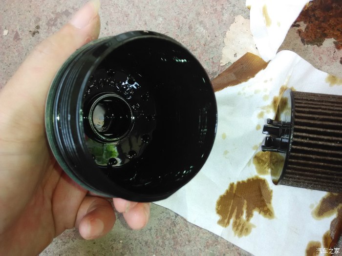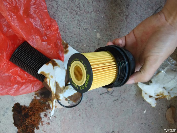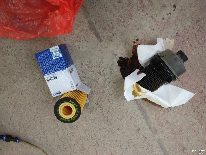 这图怎么反向了?这是上好机滤之后的情况,还有先前滴落的废机油。