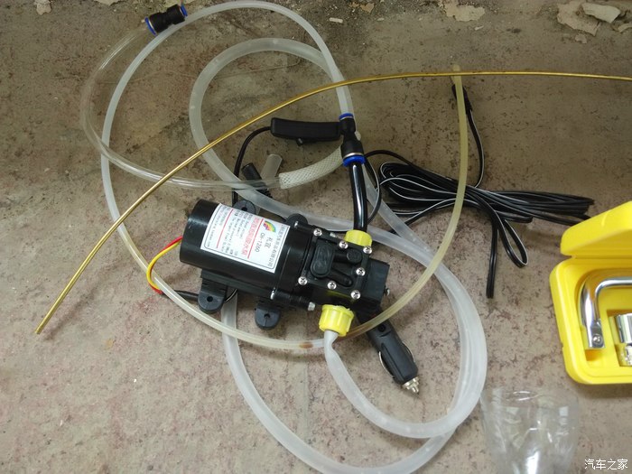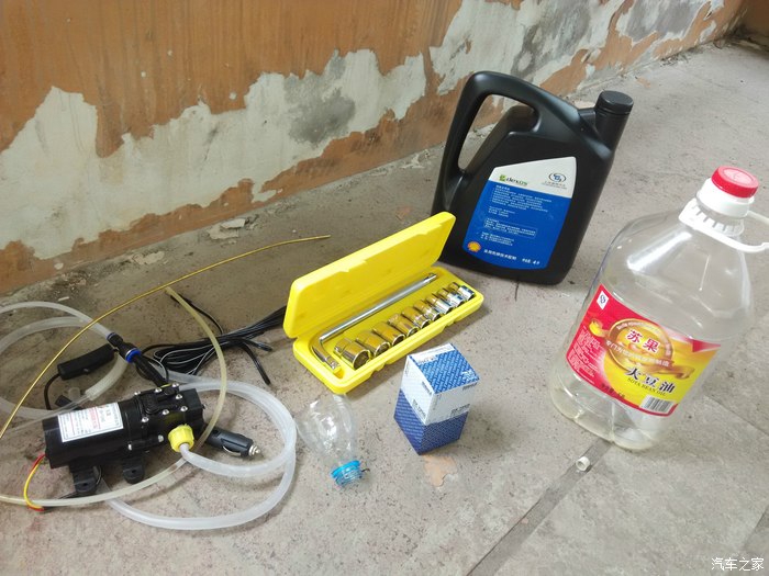 电源接车载点烟器,抽油管插入油标尺管内,一直插到底部,比较深的。另一头别忘了接废油壶,我是用5升的空油壶接的,应该够装下了。小泵自带开关的。