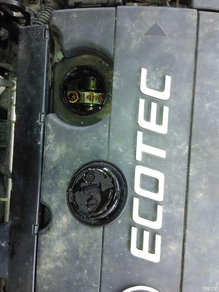 机油盖打开方法,按住旋转一下就行了,是卡口的。里面挺脏的。