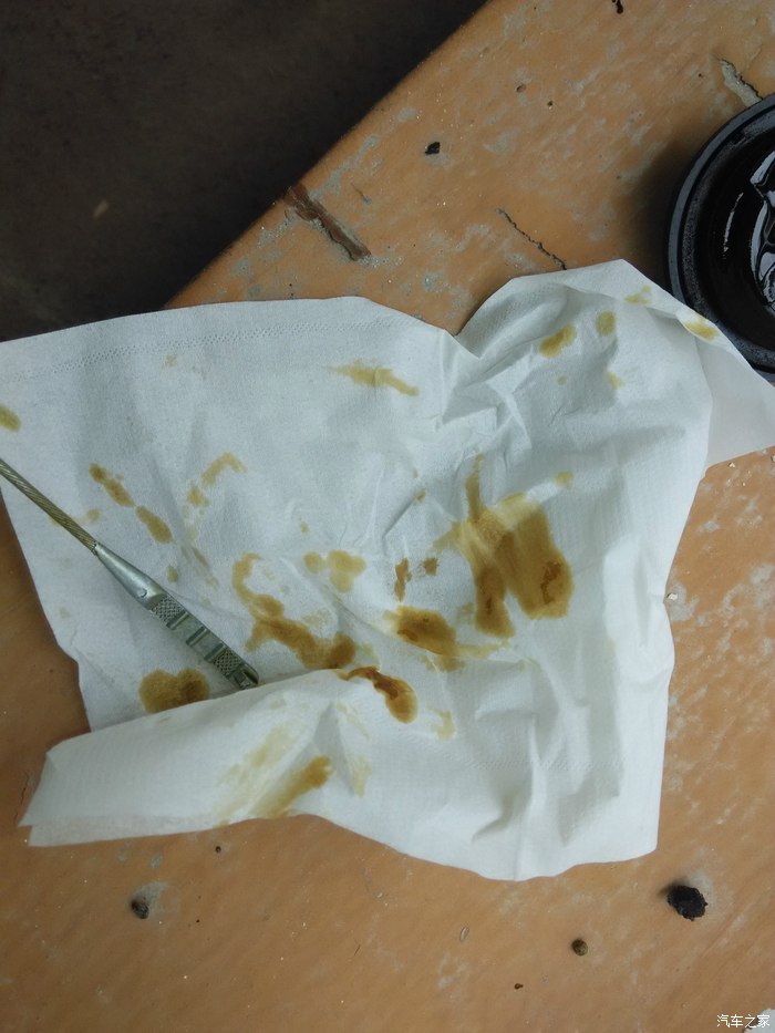 用纸擦干净。看在纸上留下的油斑,中间有明显的深黄色,是要更换了。