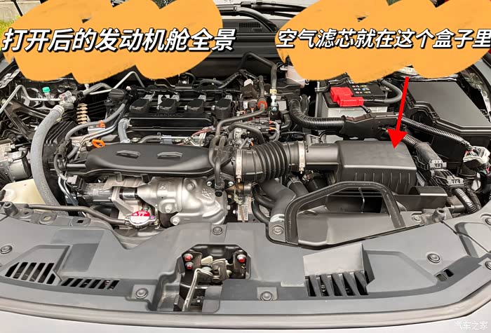 空气滤芯的盒子位置和锋范差不多,就在那个盒子里。不同的是,雅阁的只有左边两个外卡扣,右边的是内卡扣。