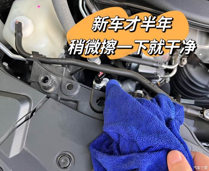 先擦一下发动机舱的灰尘,整体还是很干净的。