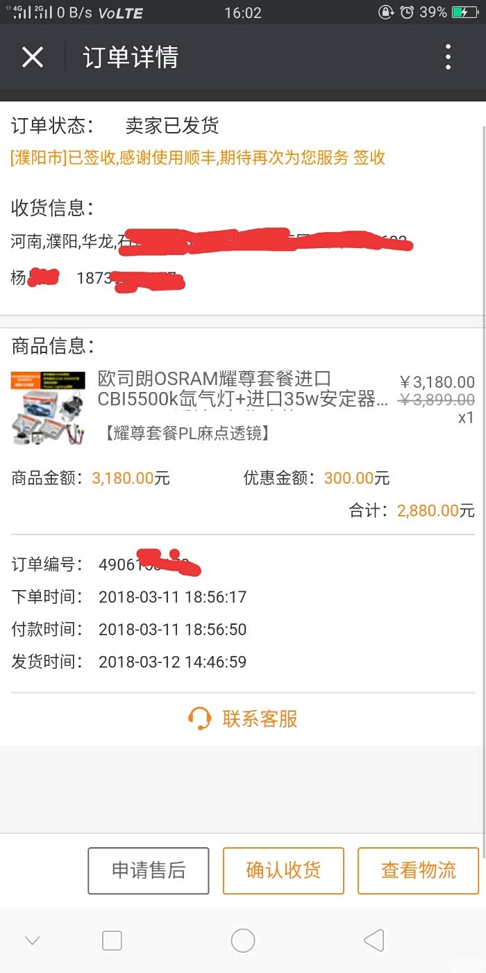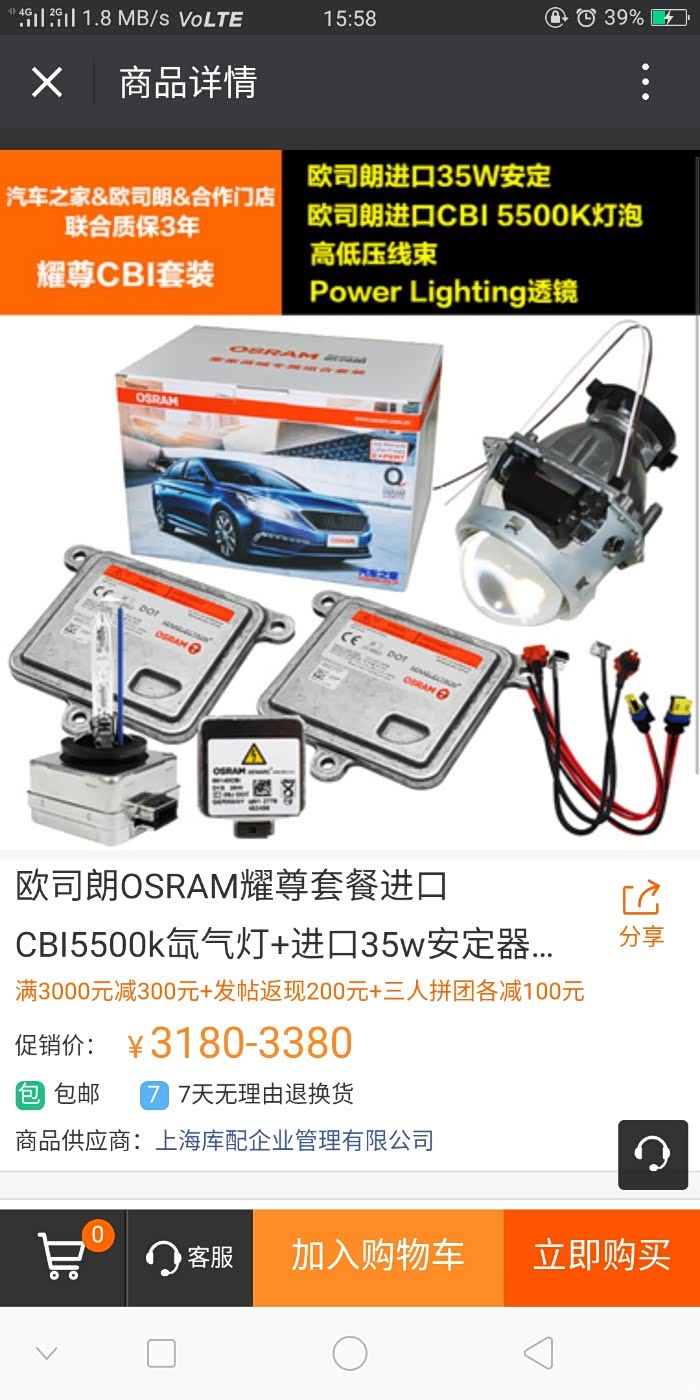 之前在速腾论坛和本地速腾交流群了解下氙气灯改装,在某宝看了某时代和某鼎大灯总成,怕副厂大灯光衰快,故障码情况多,决心拆灯改装。过年前在实体改装店了解了下,14-15拆车海拉5欧司朗cbi5500k欧司朗35w安定器套装带安装大概3300左右,怕拆车件不耐用,改灯搁浅。前几天看到汽车之家家家商城大灯升级有优惠,经过慎重考虑,对汽车之家品牌的信任,选择了欧司朗耀尊套装(国产power lighting透镜+欧司朗cbi5500k灯泡+欧司朗35w安定器+免费安装)。
