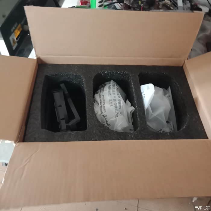 ,挺大一个箱子,里面有我的大灯套装和在家家商城买的易改件(高配内胆),这个易改件买大灯套餐享半价购买的,比某宝优惠几十块钱,家家商城还是很给力的