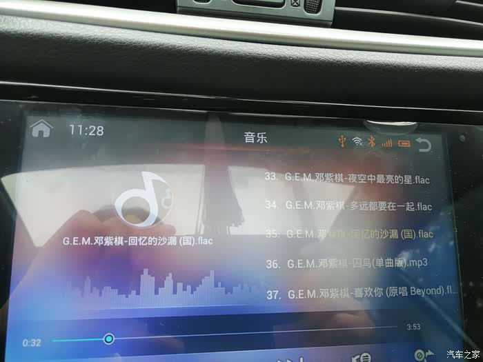 4、音乐封面只支持Mp3,无损的不会显示;虽然可以把音乐名称同步到仪表盘,但是经常会发现有些字同步不过去。