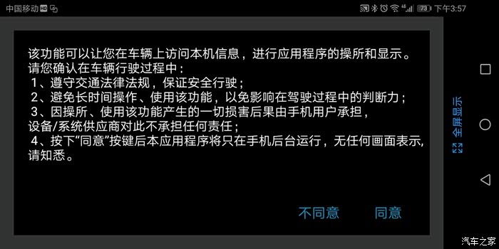 4.2.A 这时回到手机再次运行APP“雷凌互联”出现上图时,点“同意”后,放下手刹,一般会出现下图