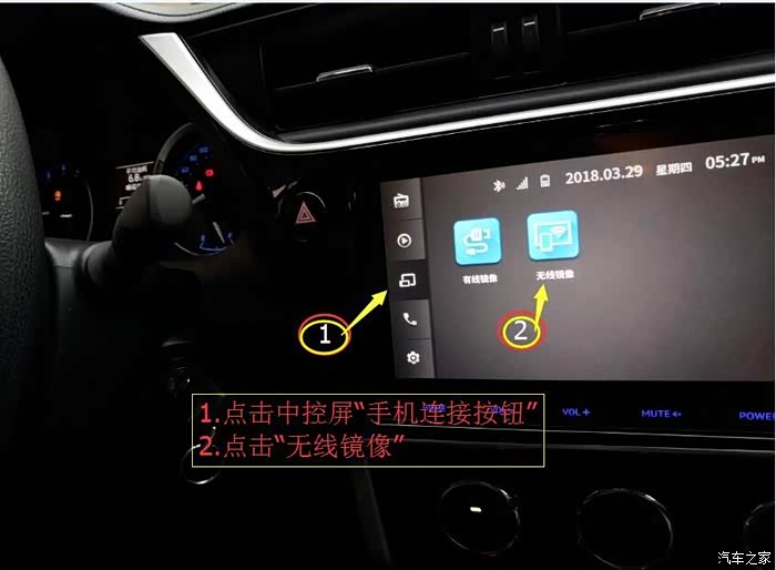 1、卡罗拉→点击中控屏“HOME”按钮→点击“手机连接”按钮 →点击“无线镜像”按钮,如下: