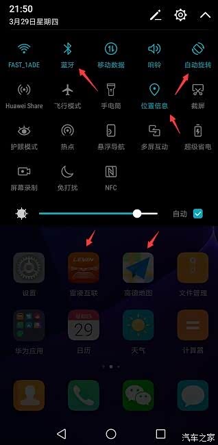 补充:有车友不知道手机如何横屏(打开“屏幕旋转”或关闭“方向锁定”或开启“自动旋转”不同手机有不同叫法 )下图我箭头所指是车机互动能用到的