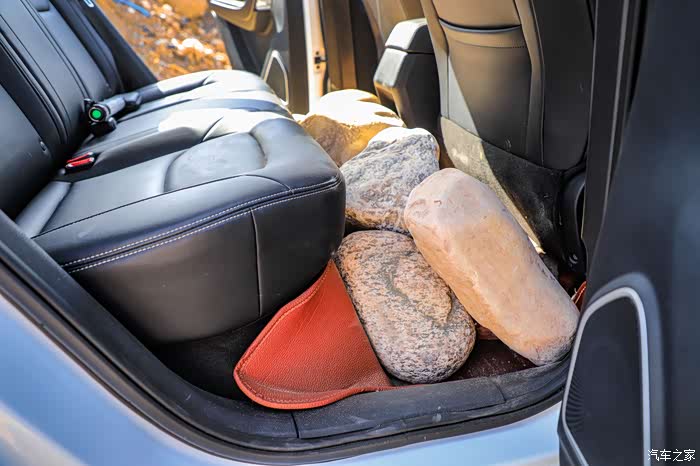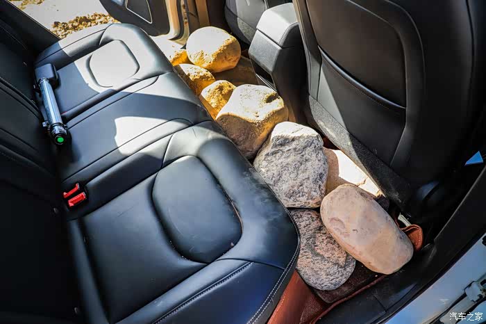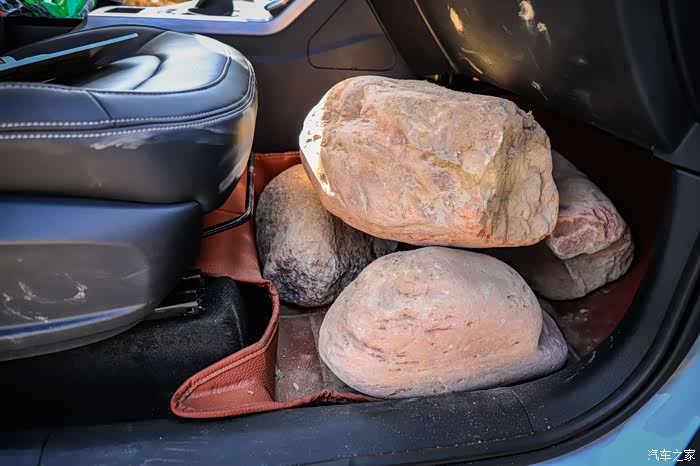 这是前排副驾驶位的石头,这么说吧,前后加一块相当于拉四个半美女的重量。所以,叫兽就幻想着拉四位美女跑了一天山路!