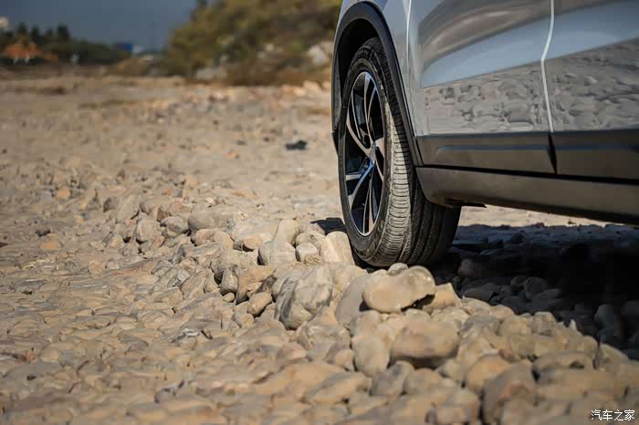 全系都是17寸的轮圈尺寸,这个是中高配的样式。轮胎宽是215mm的,相比235mm胎宽的T33,奔腾X40的胎噪稍微小一些。