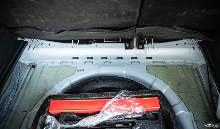 备胎池里依然能看到粗壮的横梁,减震板使用面积也很多,对隔音减震有帮助。