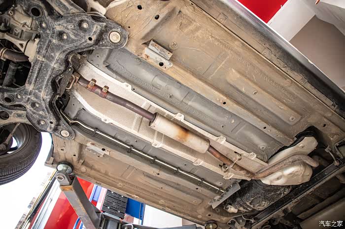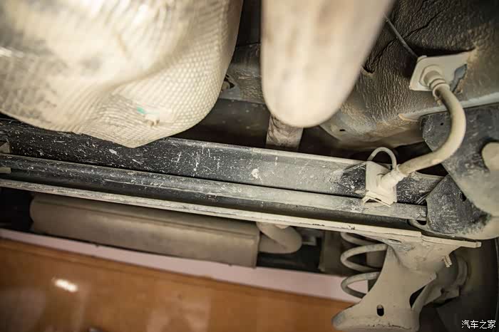 前面我们看到奔腾X40很多高强度钢横梁,再看底盘,从前副车架一直延伸到油箱部分的加强筋,就知道这骨架硬不硬了。有些车这个纵向加强筋只有一半,不会从头覆盖到尾,这点厂家做的很好。装甲涂层全覆盖,非常的厚。