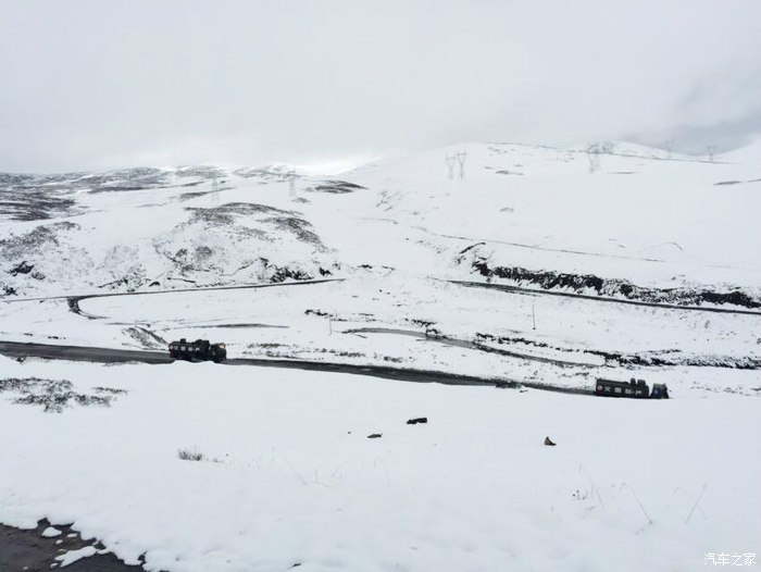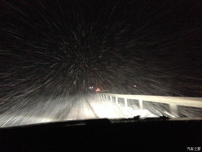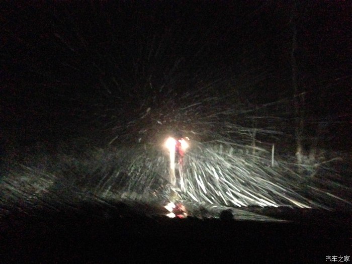 暴雪下的路看不清楚了,只能跟着前车的轮胎印走。