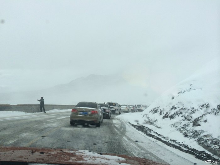 翻越第一座高山折多山的时候下起了暴雪,第一次看到这么大的雪,堵了三个多小时。