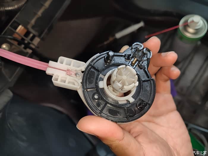 装上后用手转转,阻力明显减小,然后开始装车,最后发现旋钮里边也裂了,估计是原车主刚开始有问题时也是用蛮力拧坏了,换个就行了。还要提醒各位车友,平时按钮多转转,冷暖两边尽量不要拧到底,才能用的更长久。