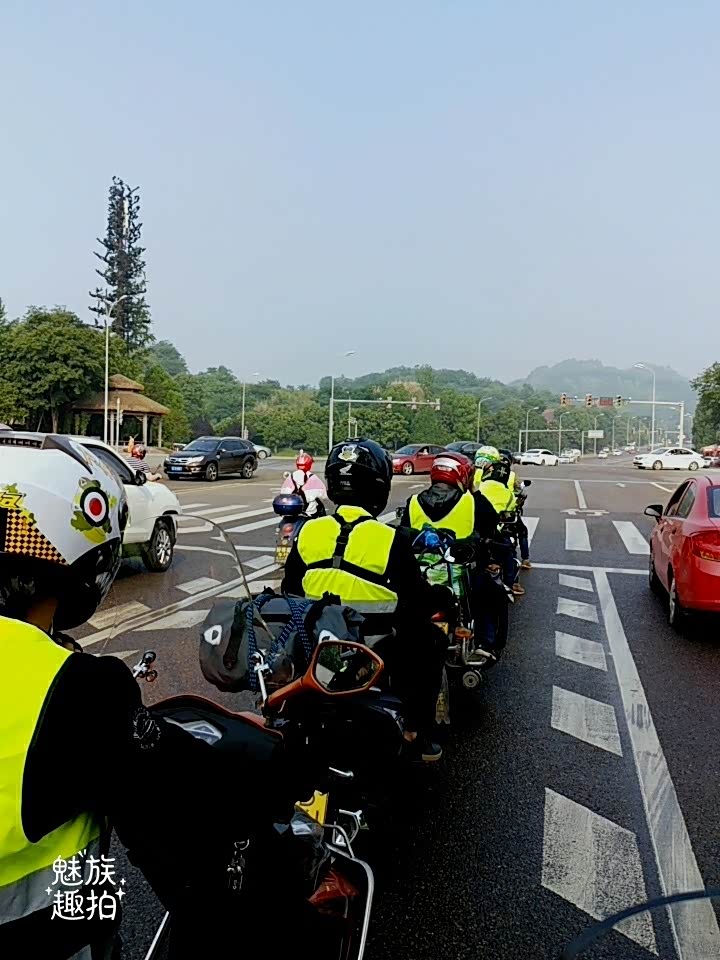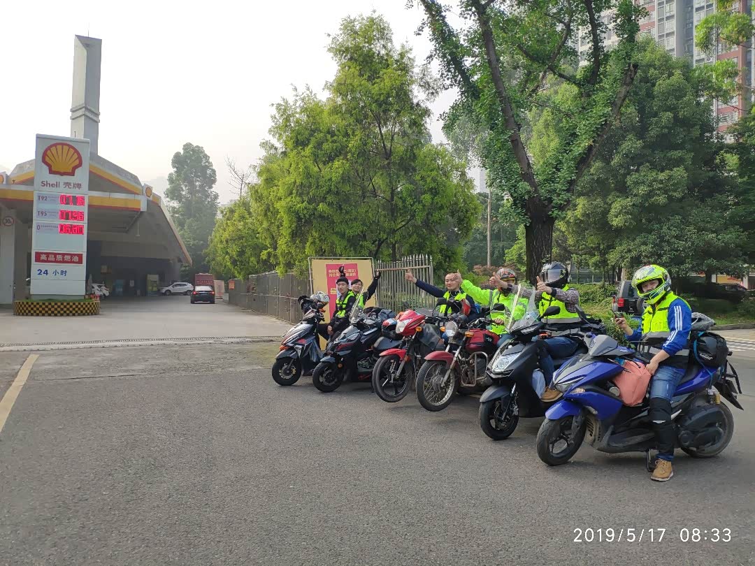 5.17骑士节真好,出发天气多云,璧山壳牌加油站集合照。重庆出了后,内江段路况路很不好。